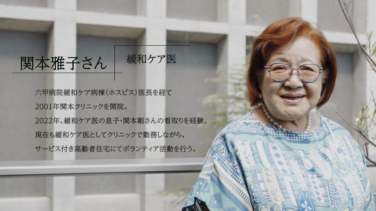 六甲病院緩和ケア病棟(ホスピス)医長を経て2001年関本クリニックを開院。2022年、緩和ケア医の息子・関本剛さんの看取りを経験。現在も緩和ケア医としてクリニックで勤務しながら、サービス付き高齢者住宅にてボランティア活動を行う。