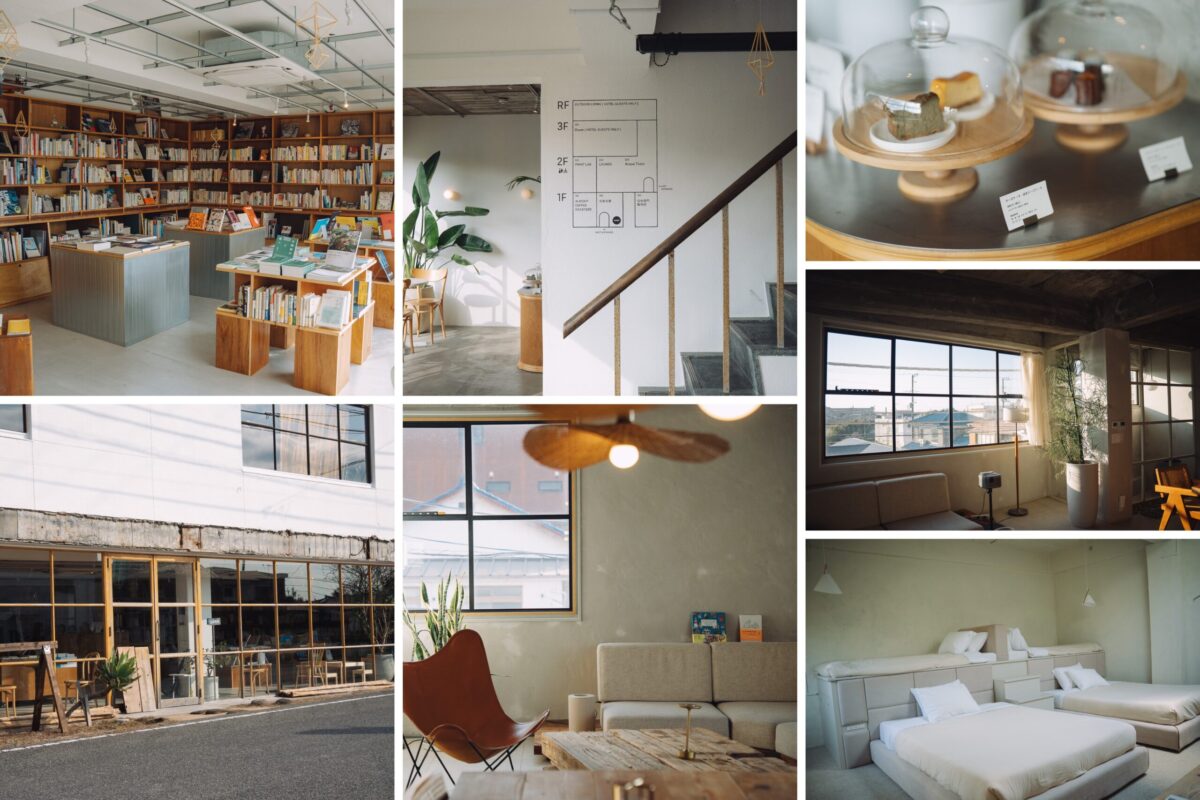 本屋を軸に、カフェやレストラン、レザー工房、宿〈Room〉が集う、館山の複合施設「YANE TATEYAMA」。鋸南町で建設業を営む田村氏の「地域に根付くような場をつくりたい」との思いから始まったこの場所は、街に溶け込みながらも、各店の個性が静かに際立つ。宿泊が加わることで、滞在は観光の通過点ではなく、街に少し近づく時間へ。肩の力が抜けるような、日常の延長にある時間が、ゆるやかに流れています。