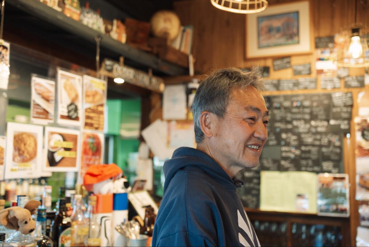 この店を営むのは、渡辺昭一郎さん。18歳まで館山で暮らし、都内の放送局でディレクターとして働きながら、東京と館山の二拠点生活を続けてきました。定年を機に、長く空き家になっていた実家を1年かけてセルフリノベーション。2021年7月、カフェとして“プレ”オープンしました。
